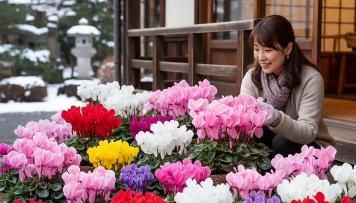 近年では、屋外のガーデニングにも使えるよう品種改良された、耐寒性の高い「ガーデンシクラメン」も登場し、冬の寄せ植えの主役として、楽しみ方の幅がさらに広がりました。
