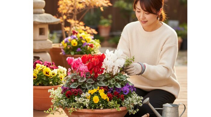冬のガーデニングを彩る寄せ植えには、空間を華やかに演出する大きな魅力があります。中でもシクラメンは、その豊富な色と長い開花時期から、主役にふさわしい植物と言えます。